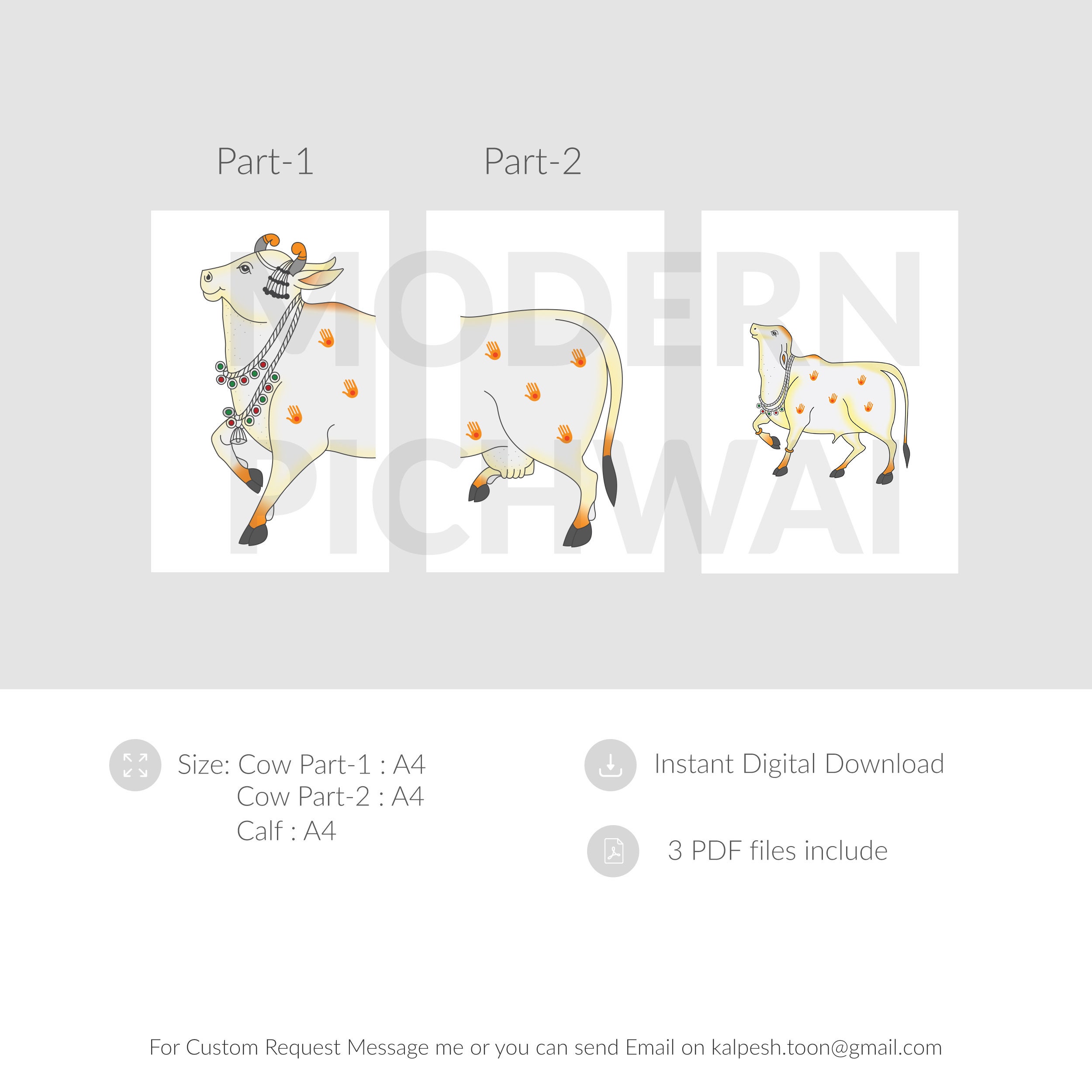 Modern Pichwai Cow And Calf For Wall Decoration Etsy Australia